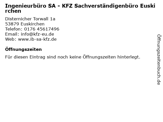 | Ingenieurbüro SA - KFZ Sachverständigenbüro Euskirchen anrufen | |
