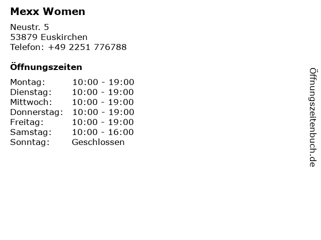| Öffnungszeiten Mexx Women in Euskirchen anzeigen | |
