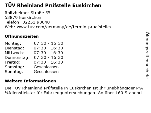 Branchen & Suchbegriffe zu TÜV Rheinland Prüfstelle Euskirchen:prüfstelle, rheinland, tüv |