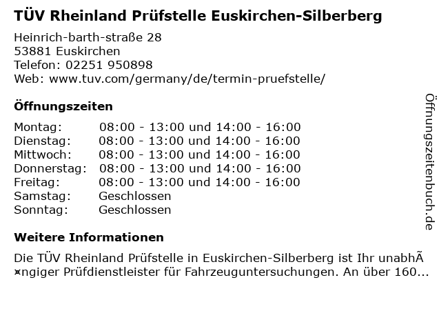 Branchen & Suchbegriffe zu TÜV Rheinland Prüfstelle Euskirchen-Silberberg:prüfstelle, rheinland, silberberg, tüv |