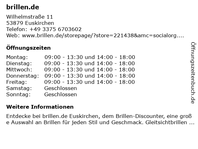 Öffnungszeiten brillen.de in Euskirchen anzeigen | |