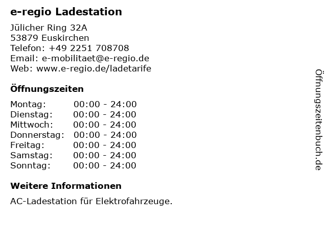 Öffnungszeiten e-regio Ladestation in Euskirchen anzeigen