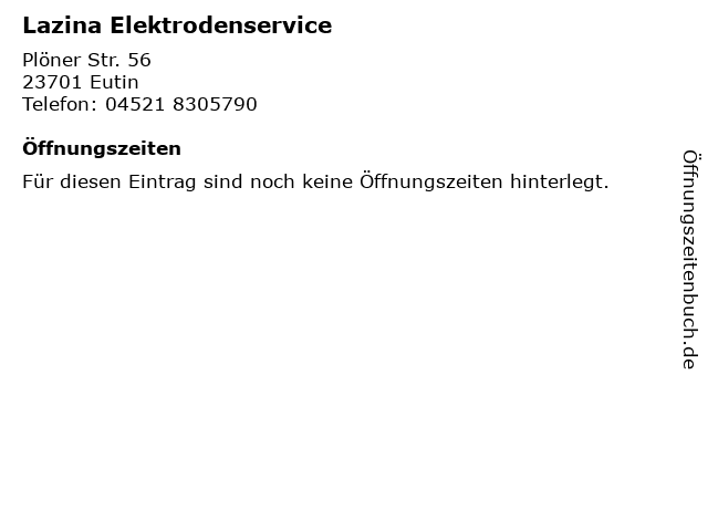 | Öffnungszeiten Lazina Elektrodenservice in Eutin anzeigen | |