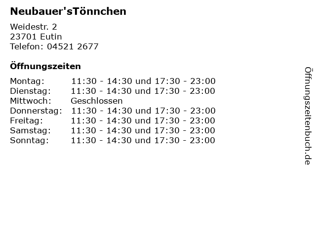 | Öffnungszeiten Neubauer'sTönnchen in Eutin anzeigen | |
