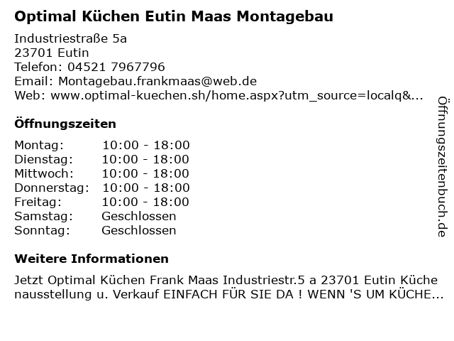 Branchen & Suchbegriffe zu Optimal Küchen Eutin Maas Montagebau:küchen, maas, montagebau, optimal |