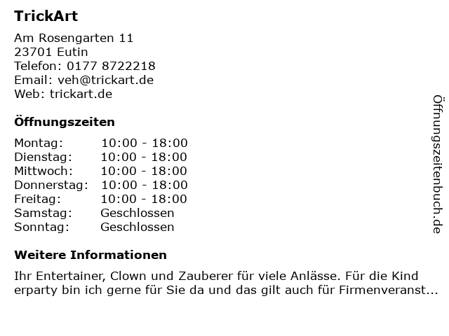 | Öffnungszeiten TrickArt in Eutin anzeigen | |