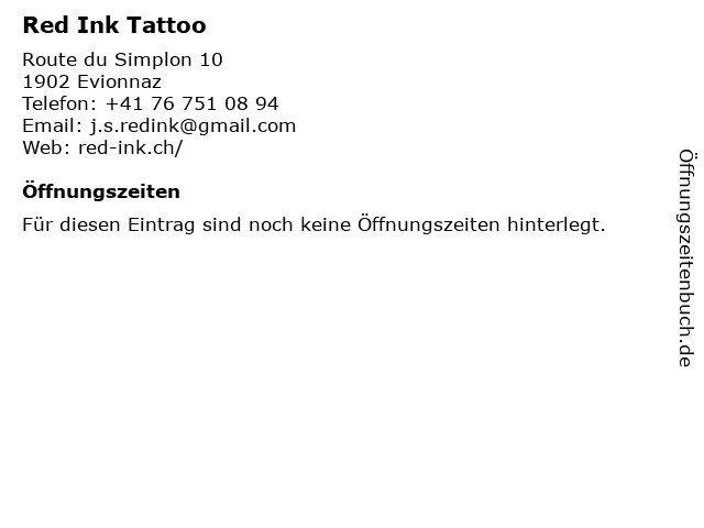 | Öffnungszeiten Red Ink Tattoo in Evionnaz anzeigen | |