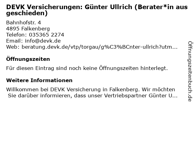 | DEVK Versicherungen: Günter Ullrich (Berater*in ausgeschieden) anrufen | |