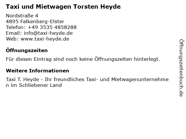 | Taxi und Mietwagen Torsten Heyde anrufen | |
