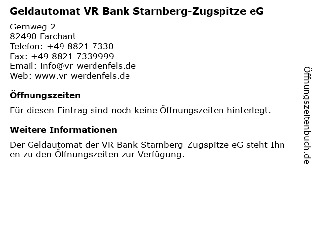 | Geldautomat VR Bank Starnberg-Zugspitze eG anrufen | |