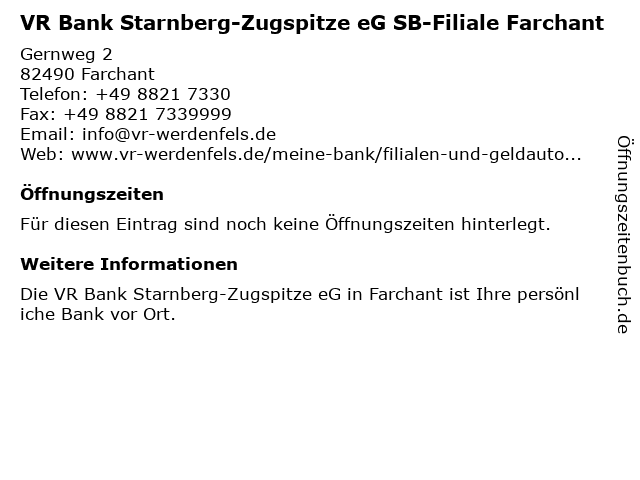 | VR Bank Starnberg-Zugspitze eG SB-Filiale Farchant anrufen | |