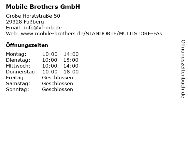 | Öffnungszeiten Mobile Brothers GmbH in Faßberg anzeigen | |