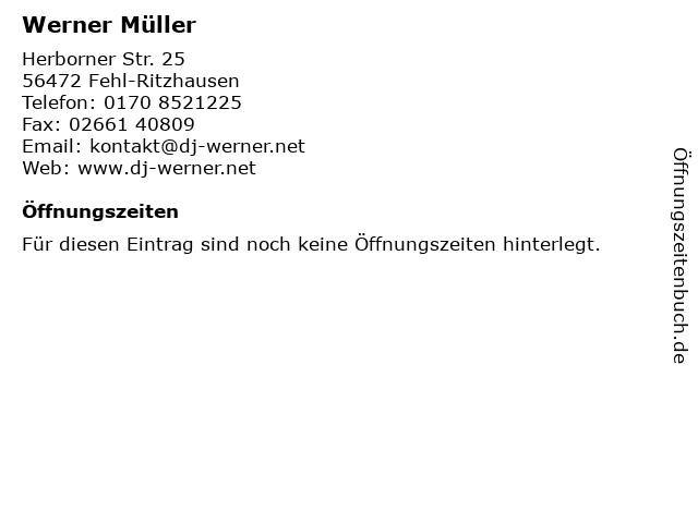 | Öffnungszeiten Werner Müller in Fehl-Ritzhausen anzeigen | |