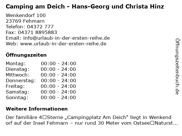 3 Ferienpark Wulfener Hals Camping | Rezeption (Entfernung: 11,65 km) Wulfener Hals Weg 100, 23769 Wulfen 5 Camping Strandparadies Großenbrode Inh. Ulrich Berger (Entfernung: 16,67 km) Südstrand 3, 23775 Großenbrode 6 Cornelia Müller Kosmetik am Deich (Entfernung: 31,35 km) Am Deich 55, 23747 Dahme, Schleswig-Holstein |