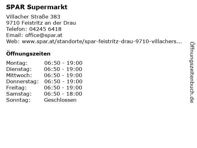 | Öffnungszeiten SPAR Supermarkt in Feistritz an der Drau anzeigen | |
