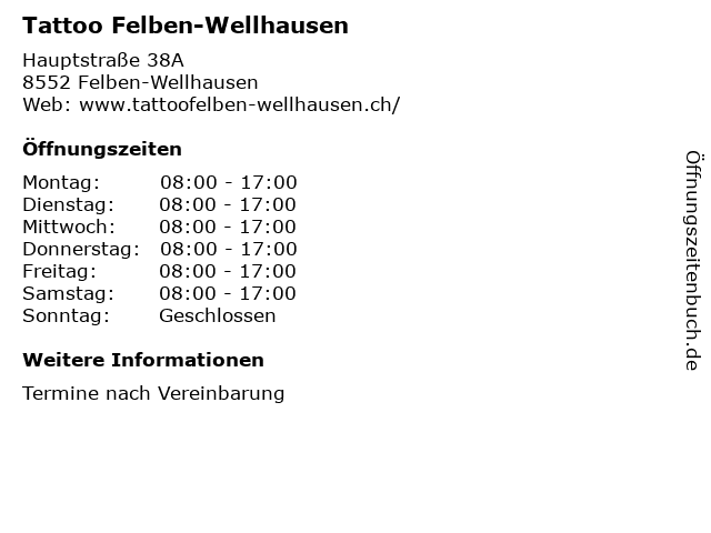 | Öffnungszeiten Tattoo Felben-Wellhausen in Felben-Wellhausen anzeigen | |