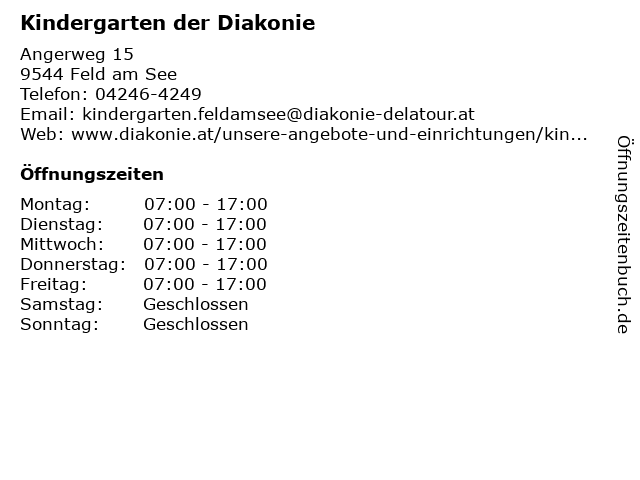 | Öffnungszeiten Kindergarten der Diakonie in Feld am See anzeigen | |