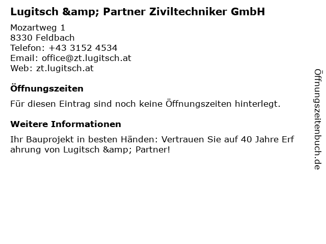 | Lugitsch & Partner Ziviltechniker GmbH anrufen | |