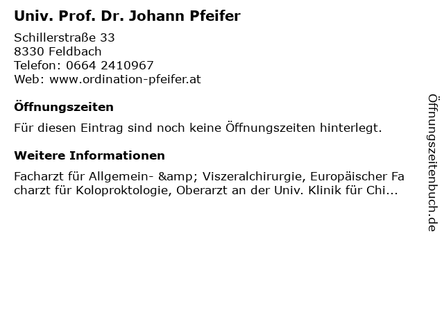 | Univ. Prof. Dr. Johann Pfeifer anrufen | |