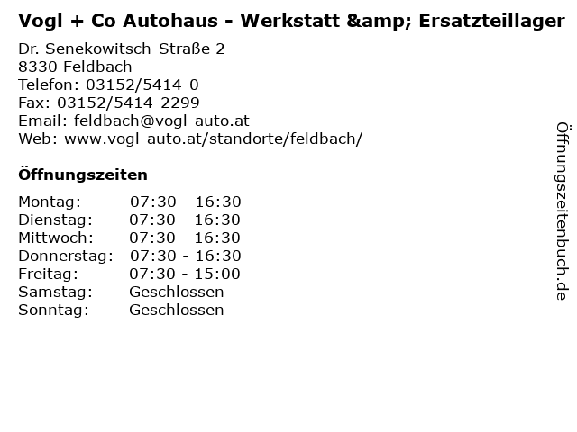 5 Vogl + Co GmbH Autohaus - Werkstatt und Ersatzteillager (Entfernung: 30,58 km) Industriestraße 10, 8430 Leibnitz 6 |