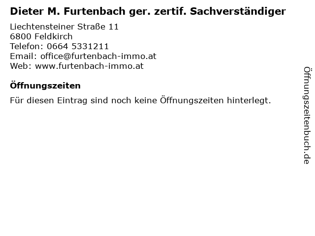 | Dieter M. Furtenbach ger. zertif. Sachverständiger anrufen | |