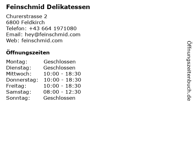 | Öffnungszeiten Feinschmid Delikatessen in Feldkirch anzeigen | |