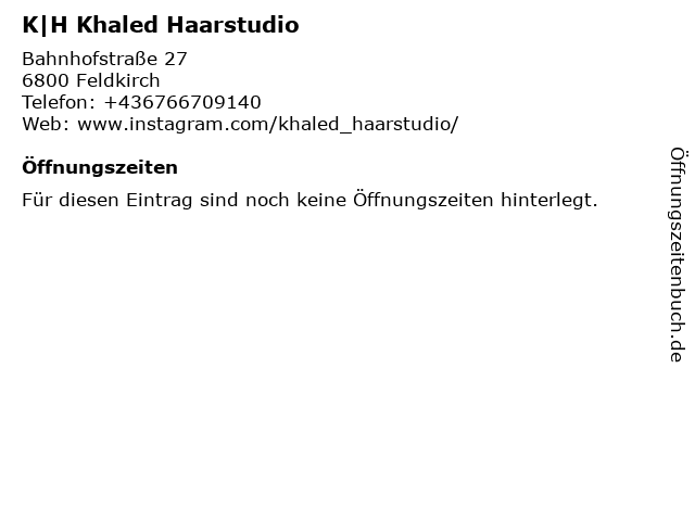 | Öffnungszeiten K|H Khaled Haarstudio in Feldkirch anzeigen | |