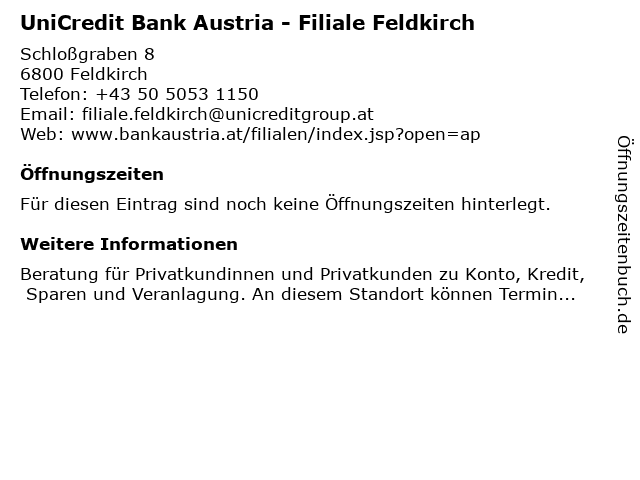 | UniCredit Bank Austria - Filiale Feldkirch anrufen | |