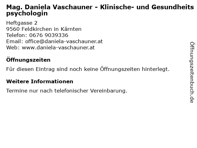 | Mag. Daniela Vaschauner - Klinische- und Gesundheitspsychologin anrufen | |