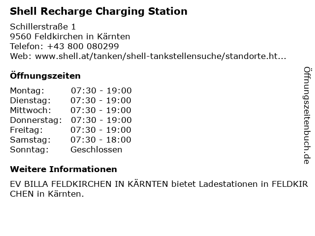 Shell Recharge Charging Station in Feldkirchen in Kärnten: Telefonnummer, Öffnungszeiten und Adresse