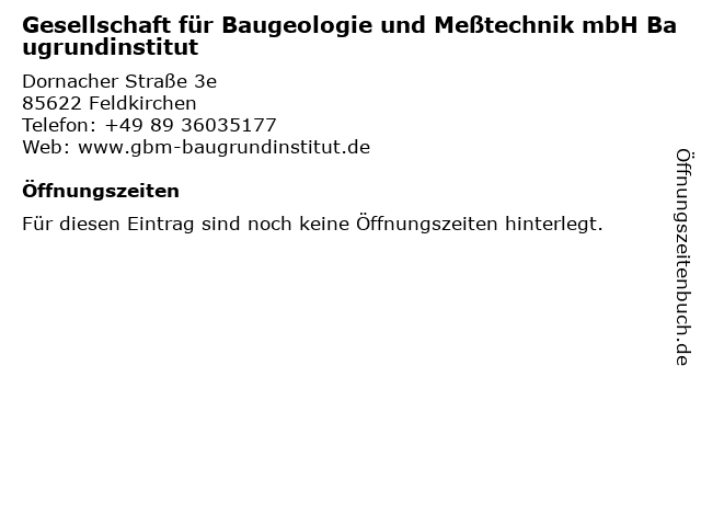 | Gesellschaft für Baugeologie und Meßtechnik mbH Baugrundinstitut anrufen | |