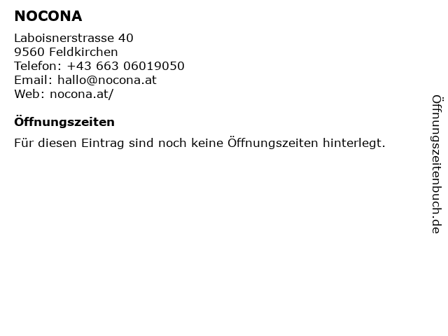 | Öffnungszeiten NOCONA in Feldkirchen anzeigen | |
