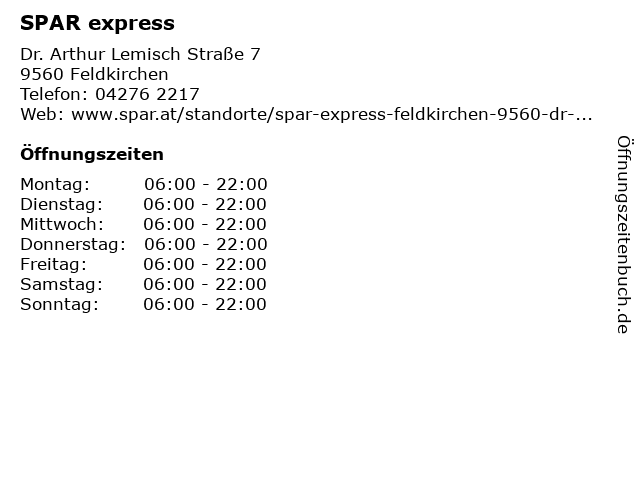| Öffnungszeiten SPAR express in Feldkirchen anzeigen | |