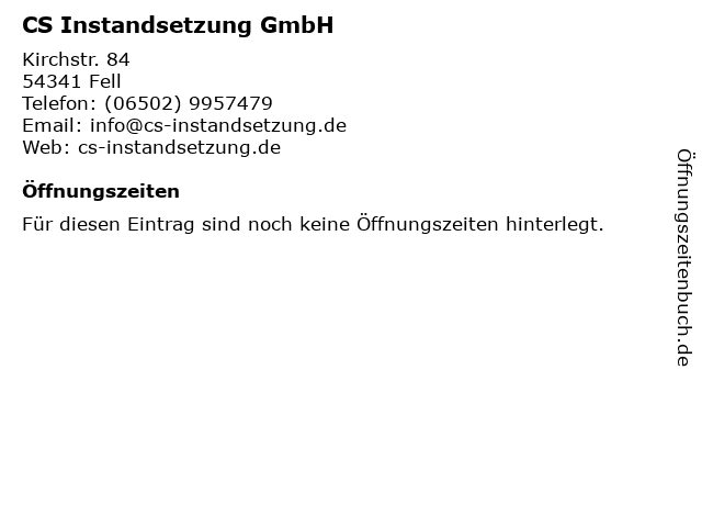 | Öffnungszeiten CS Instandsetzung GmbH in Fell anzeigen | |