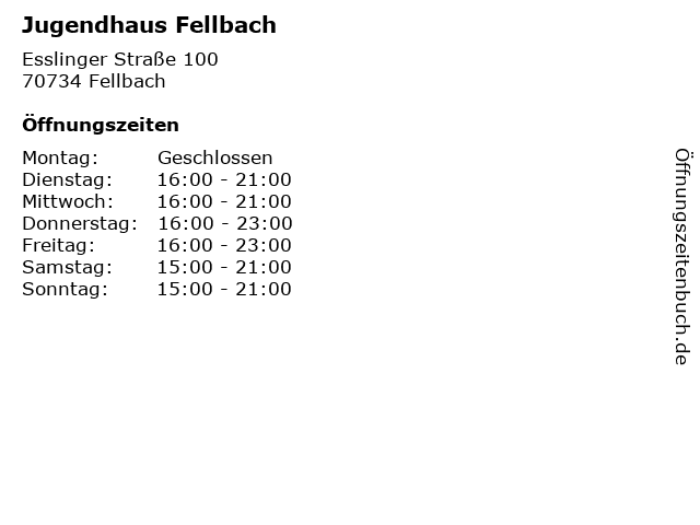 Öffnungszeiten Jugendhaus Fellbach in Fellbach anzeigen | |