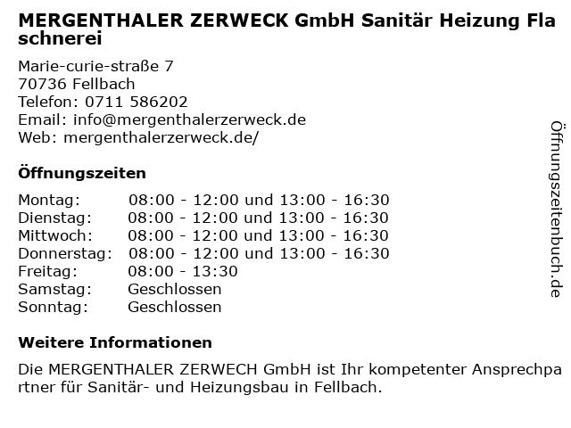 Branchen & Suchbegriffe zu MERGENTHALER ZERWECK GmbH Sanitär Heizung Flaschnerei:flaschnerei, heimautomatisierungsdienst, heizung, mergenthaler, sanitär, zerweck |