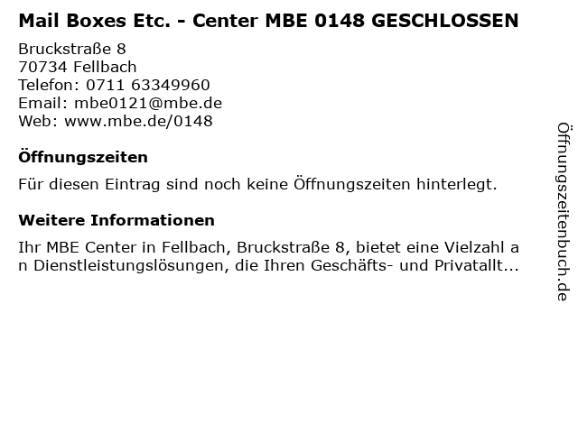 | Mail Boxes Etc. - Center MBE 0148 GESCHLOSSEN anrufen | |