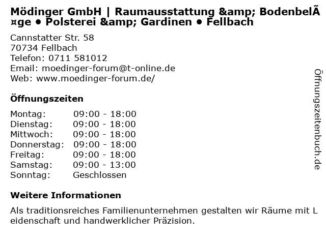 Branchen & Suchbegriffe zu Mödinger GmbH | Raumausstattung & Bodenbeläge • Polsterei & Gardinen • Fellbach:bodenbeläge, gardinen, mödinger, polsterei, raumausstattung, • |