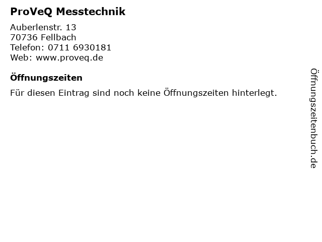 | Öffnungszeiten ProVeQ Messtechnik in Fellbach anzeigen | |