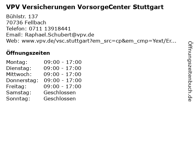 2 VPV Versicherungen VorsorgeCenter Stuttgart (Entfernung: 13,86 km) Mittlerer Pfad 19, 70499 Stuttgart 3 VPV Versicherungen Giuseppe Sirna - GESCHLOSSEN (Entfernung: 1,66 km) Stuttgarter Str. 106, 70736 Fellbach 6 |
