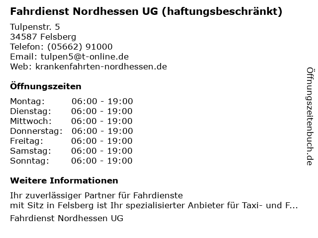 Branchen & Suchbegriffe zu Fahrdienst Nordhessen UG (haftungsbeschränkt):(haftungsbeschränkt), behindertentransport, bestrahlungsfahrten, chemotherapie-fahrten, dialysefahrten, fahrdienst, haftungsbeschränkt, nordhessen, reha-fahrten, rollstuhlfahrten, schülerfahrten, ug |