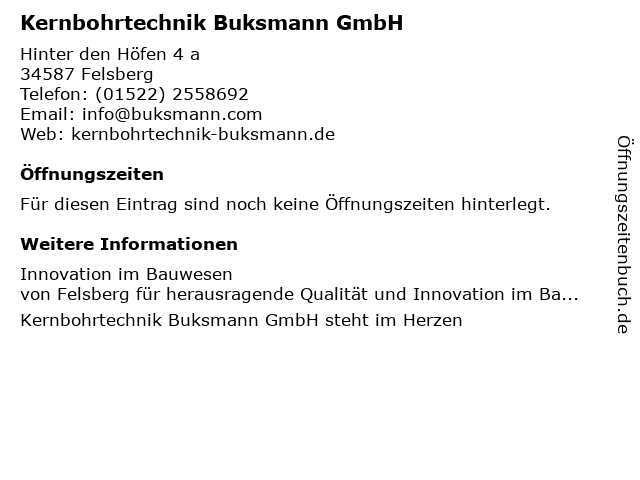 | Kernbohrtechnik Buksmann GmbH anrufen | |