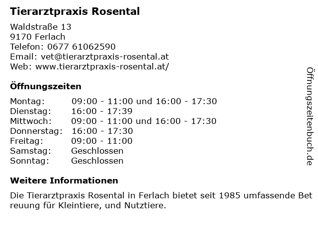 | Öffnungszeiten Tierarztpraxis Rosental in Ferlach anzeigen | |