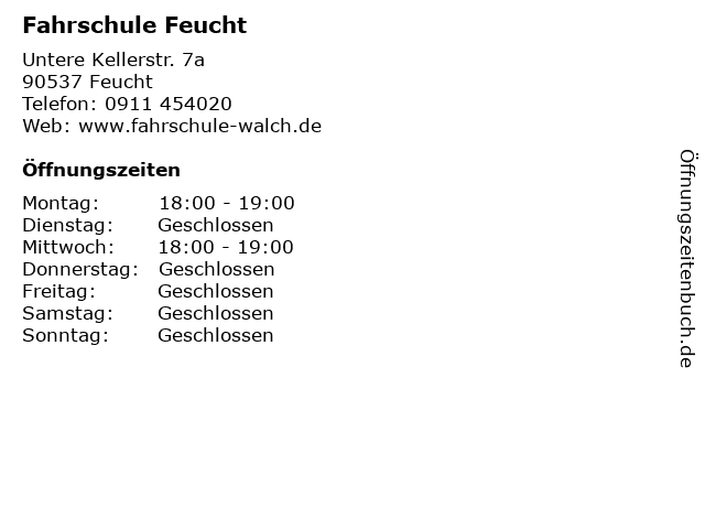 | Öffnungszeiten Fahrschule Feucht in Feucht anzeigen | |