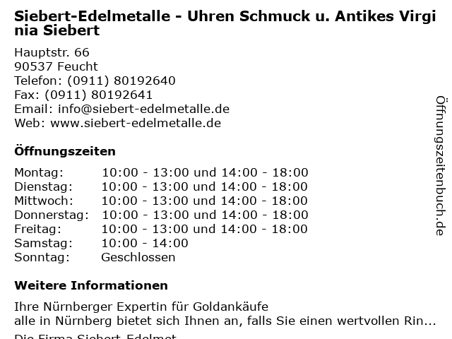 | Freitag | 10:00-13:00 und 14:00-18:00 |