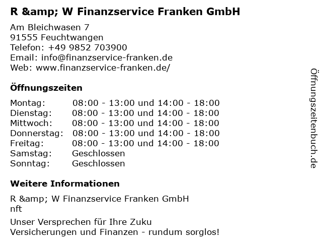 | Branchen & Suchbegriffe zu R & W Finanzservice Franken GmbH:edelmetalle, finanzservice, franken, versicherungsmakler |