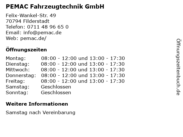 | Freitag | 08:00-12:00 und 13:00-17:30 |