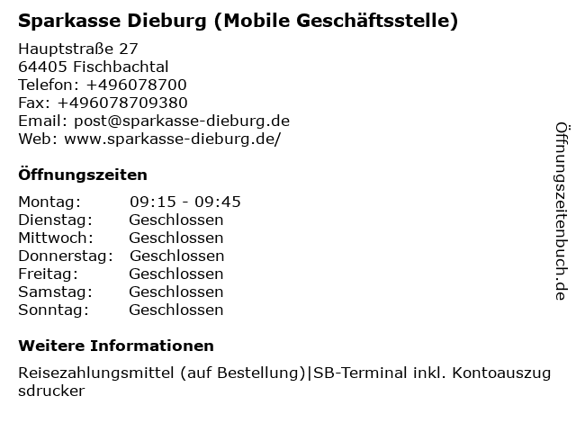 Branchen & Suchbegriffe zu Sparkasse Darmstadt und Dieburg (ehem. SK Dieburg) (Mobile Geschäftsstelle):ehem., geschäftsstelle, mobile, sk, sparkasse |