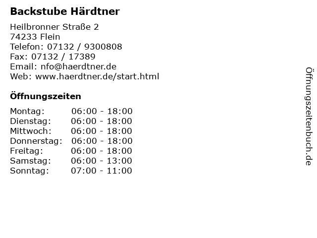 | Öffnungszeiten Backstube Härdtner in Flein anzeigen | |
