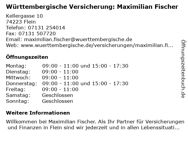 Branchen & Suchbegriffe zu Württembergische Versicherung: Maximilian Fischer:fischer, maximilian, versicherung, württembergische |